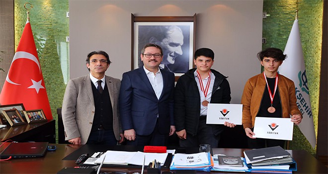 TÜBİTAK Bilim İnsanı Destek Programları Başkanlığı tarafından 2018 yılında düzenlenen 23. Ulusal Ortaokul Bilim Olimpiyatları’nda “Ortaokul Bilgisayar” dalında bronz madalya kazanan İBB Akşemsettin Ortaokulu öğrencilerinden Ali Emir Kızıl ve Mehmed Emin Baştürk, Okul Müdürleri Suat Çelik ile beraber Başakşehir Belediye Başkanı Yasin Kartoğlu’nu makamında ziyaret etti.
