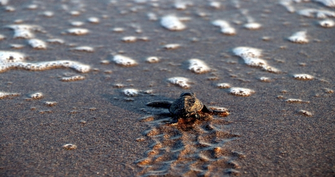 Dünyada deniz kaplumbağalarının önemli üreme alanlarından olan Mersin sahillerinde, bu yılda deniz kaplumbağaları yuvalarını yaptı. Mersin’de 5 üreme merkezi bulunan deniz kaplumbağaları, özellikle Alata, Davultepe ve Kazanlı sahilinde yuva yapıyor. Şimdiye kadar Alata ve Davultepe’de yaklaşık 250 yuva bulunurken, bu yuvaların her birinden ortalama yüzde 70 yavrunun denizle buluşması hedefleniyor. Deniz kaplumbağalarının üremesiyle ilgili açıklamalarda bulunan Mersin Üniversitesi (MEÜ) Deniz Kaplumbağaları Uygulama Araştırma Merkezi (DEKUYAM) Müdürü Prof. Dr. Serap Ergene, deniz kaplumbağalarının Mayıs ayı sonunda denizden çıkış yapmaya başladığını söyledi. Deniz kaplumbağaları yuvaları yaklaşık 1,5 aylık süreç sonunda yavru çıkışlarını vermeye başladığını belirten Ergene, "Davultepe de bugün ilk yavru çıkışı gerçekleşti. Caretta Caretta türüne ait bir yavru çıkışı oldu. Bu yuva Mayıs’ın son haftasında yapılan bir yuvaydı. Yaklaşık 45 günlük bir süreç içerisinde yuvada kuluçkalamayı tamamlayıp çıkış verdi" diye konuştu.